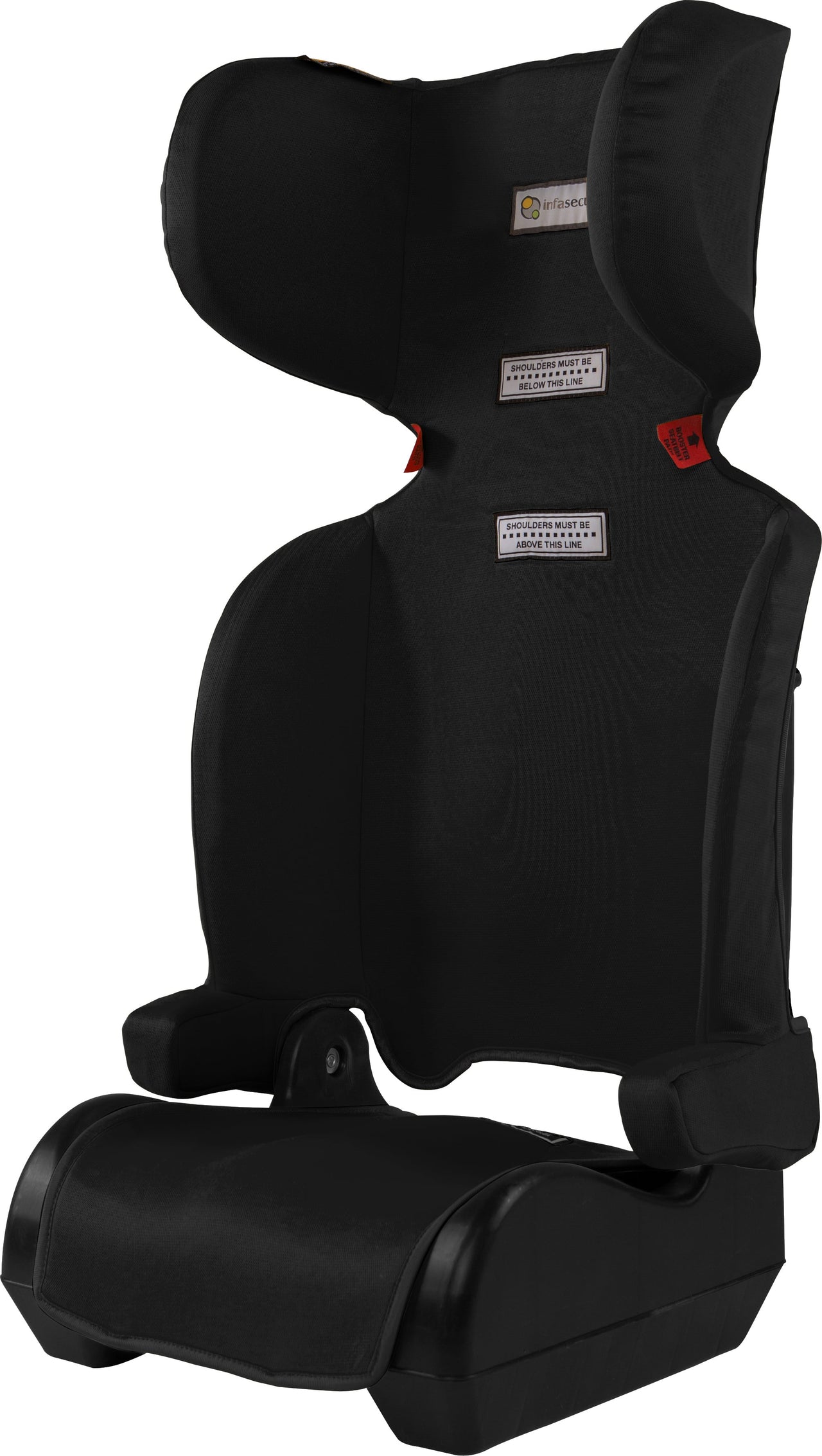 Hundreds of hours of design and engineering went into the development of the Versatile. Made from injection moulded plastic, it features a full backrest and side impact head protection. It also weighs in at less than 2kg. This means it does not require a top tether strap, which makes it exceptionally easy to use and install. Simply place on the vehicle seat, and use a lap sash seatbelt to secure the child and the Booster Seat in the vehicle.