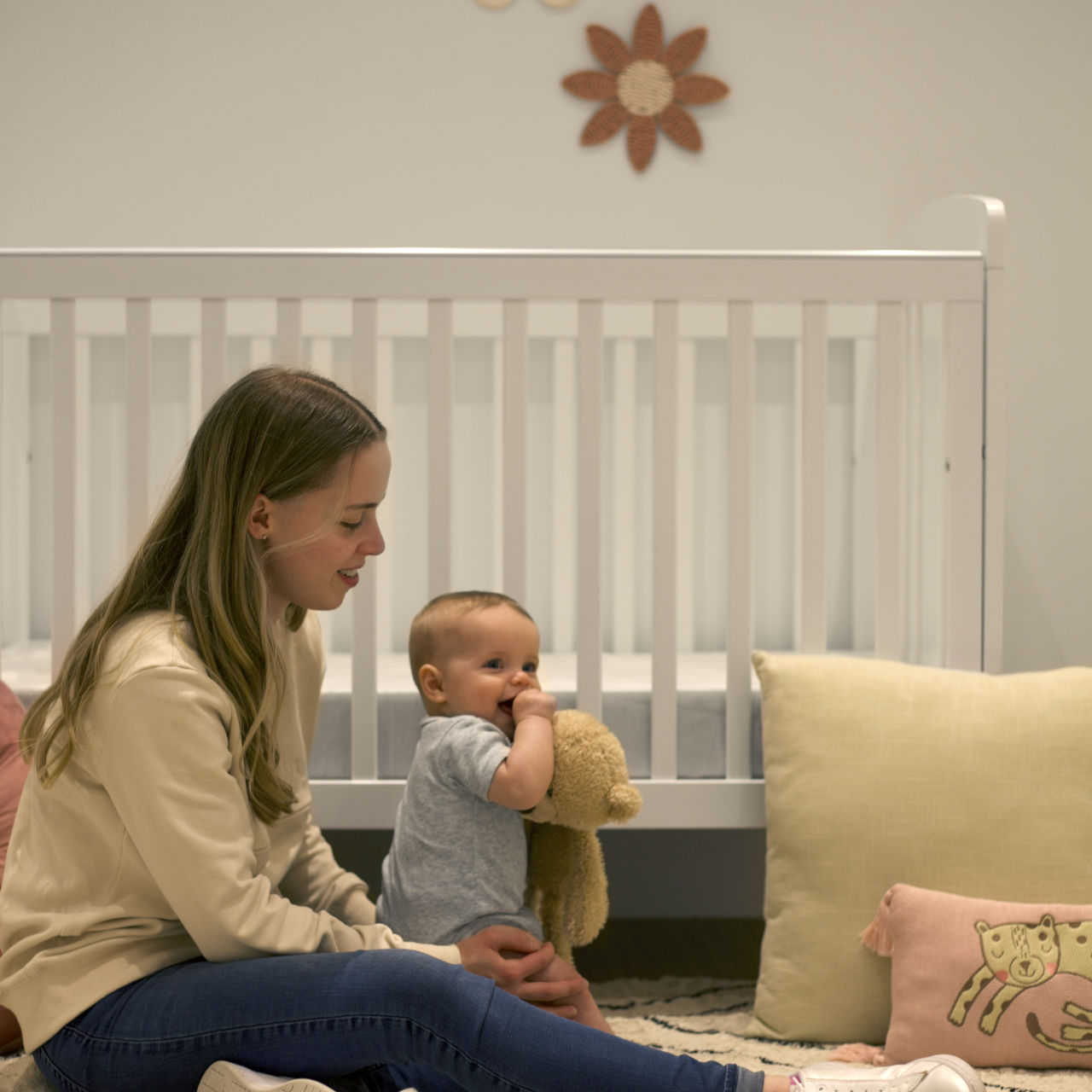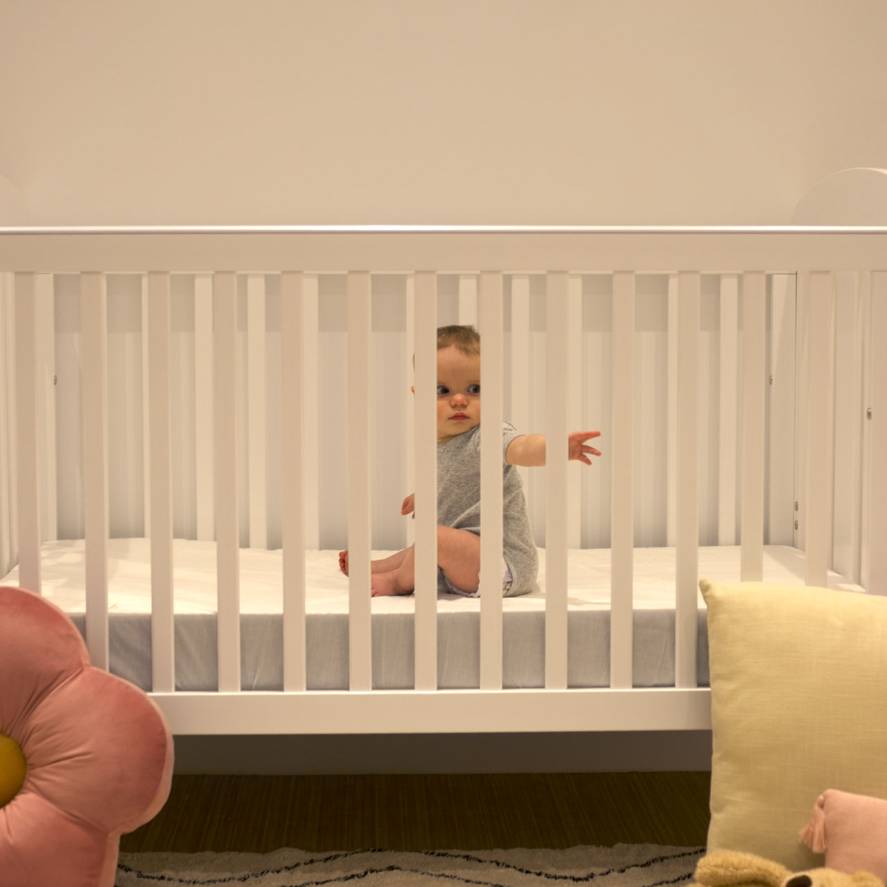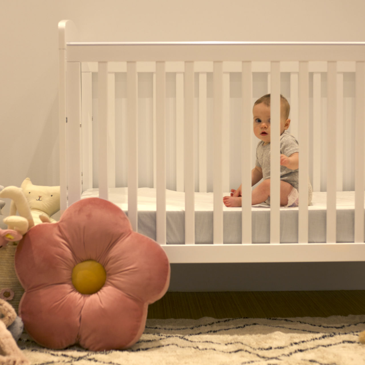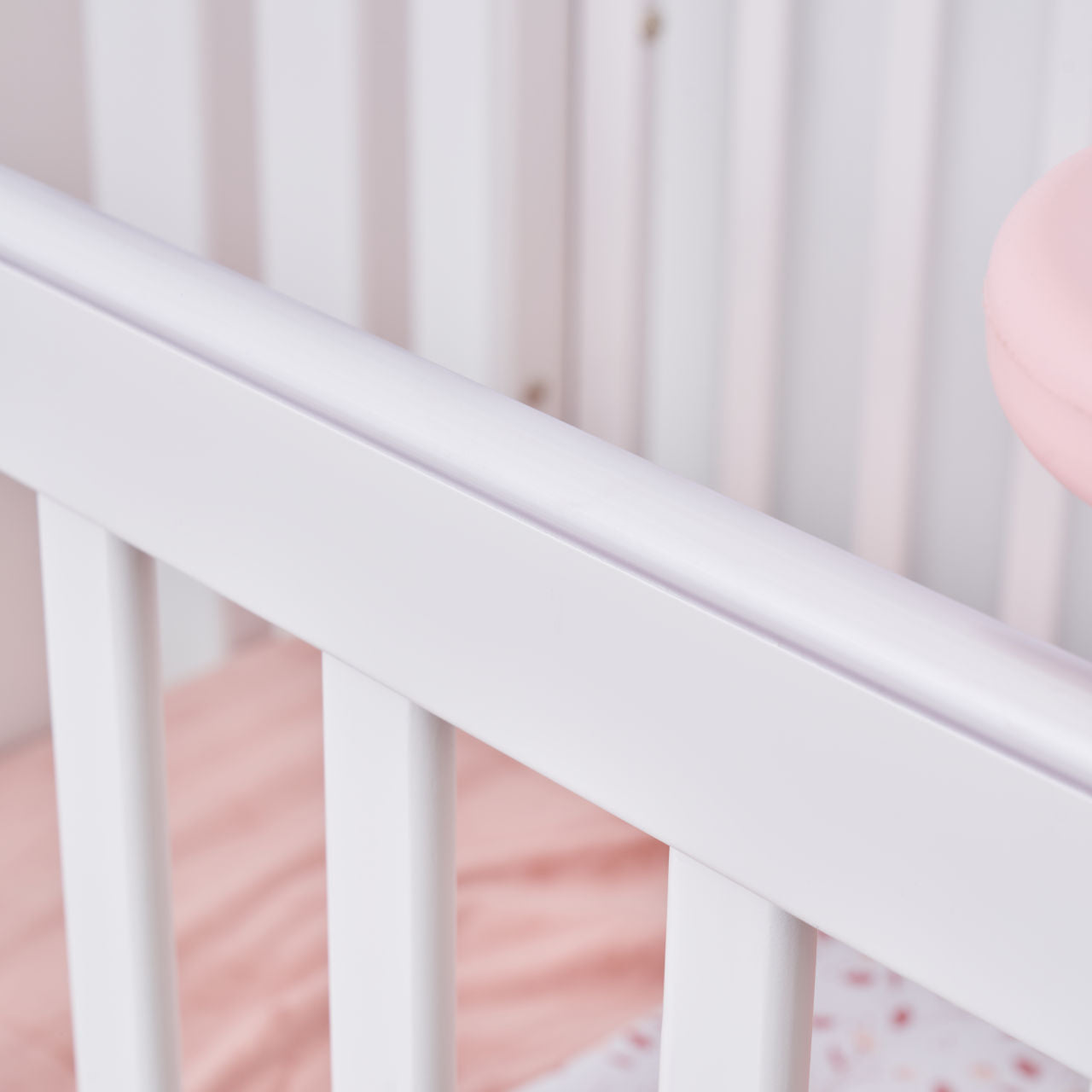 The Pearl is an understated cot that fits perfectly into a classic, elegant nursery. One of our most popular cot to date, the Pearl is available in three colours: white, honey elm and mountain ash. With a drop-side feature that eases the strain of placing your baby into their cot, and the ability to convert to a toddler bed, the Pearl will last for years to come. The slight tweak to the central slats of the end panels, adds a unique touch to a classic cot silhouette.