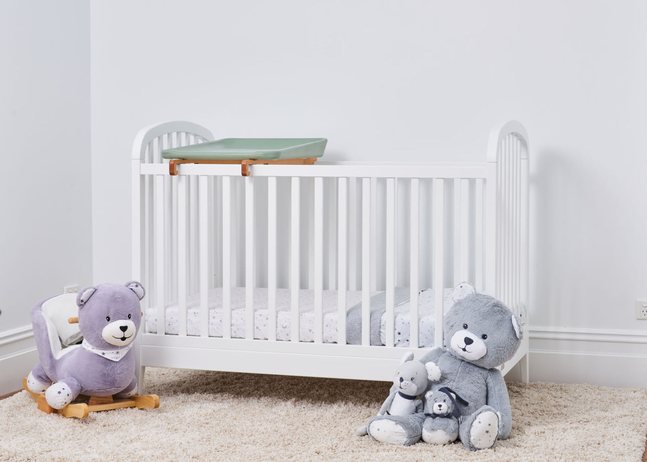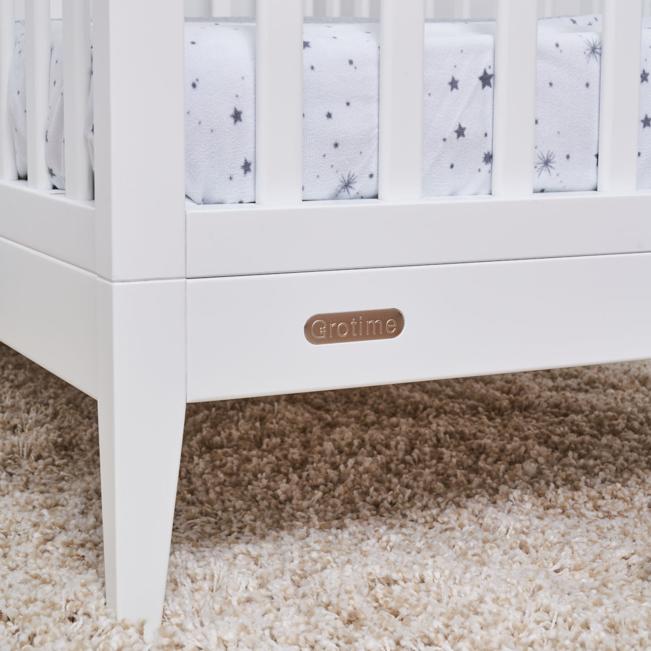The Archie Cot is available in White and fits easily into any nursery styling.