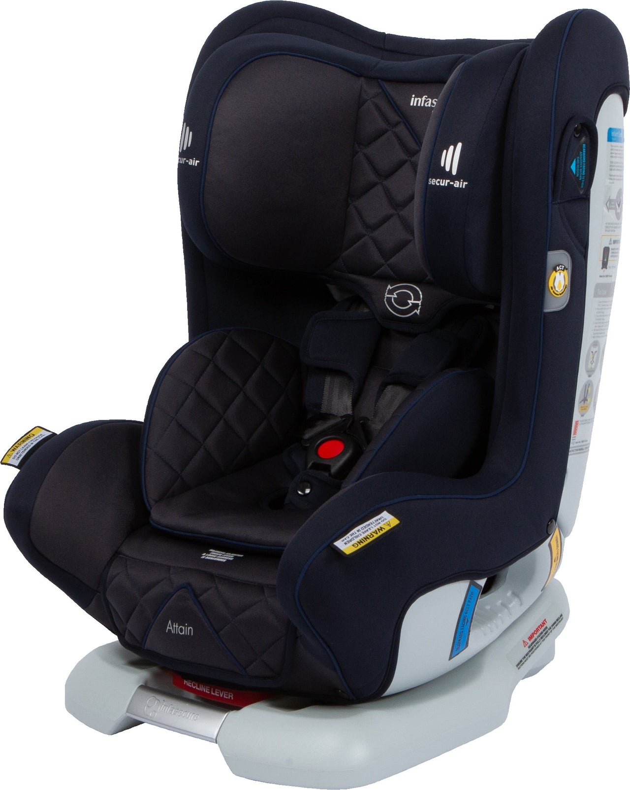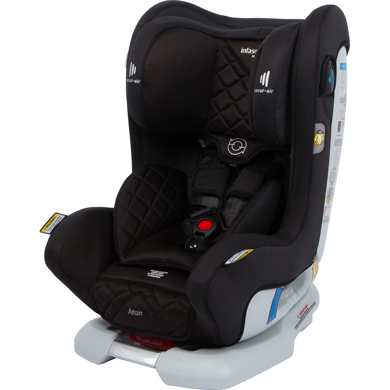 Secur-air™ works hand in hand with Air Cocoon Technology™ (A.C.T) to dramatically reduce crash energy to the child's head. Attain comes with A.C.T as a standard feature, which alone reduces crash energy to the child more than five times lower than the level required by the 2013 Australian Standard. With the addition of Secur-air™, your restraint gains a third layer of protection for your child's head.