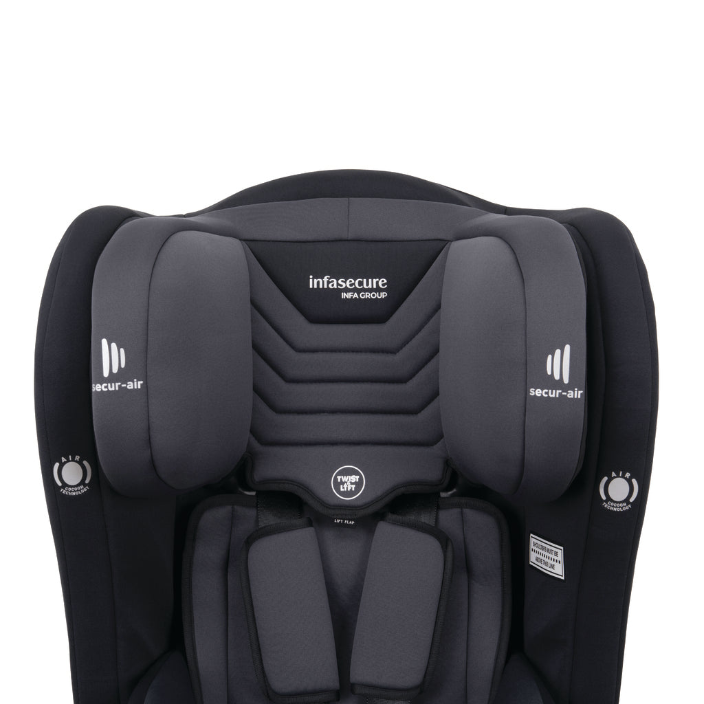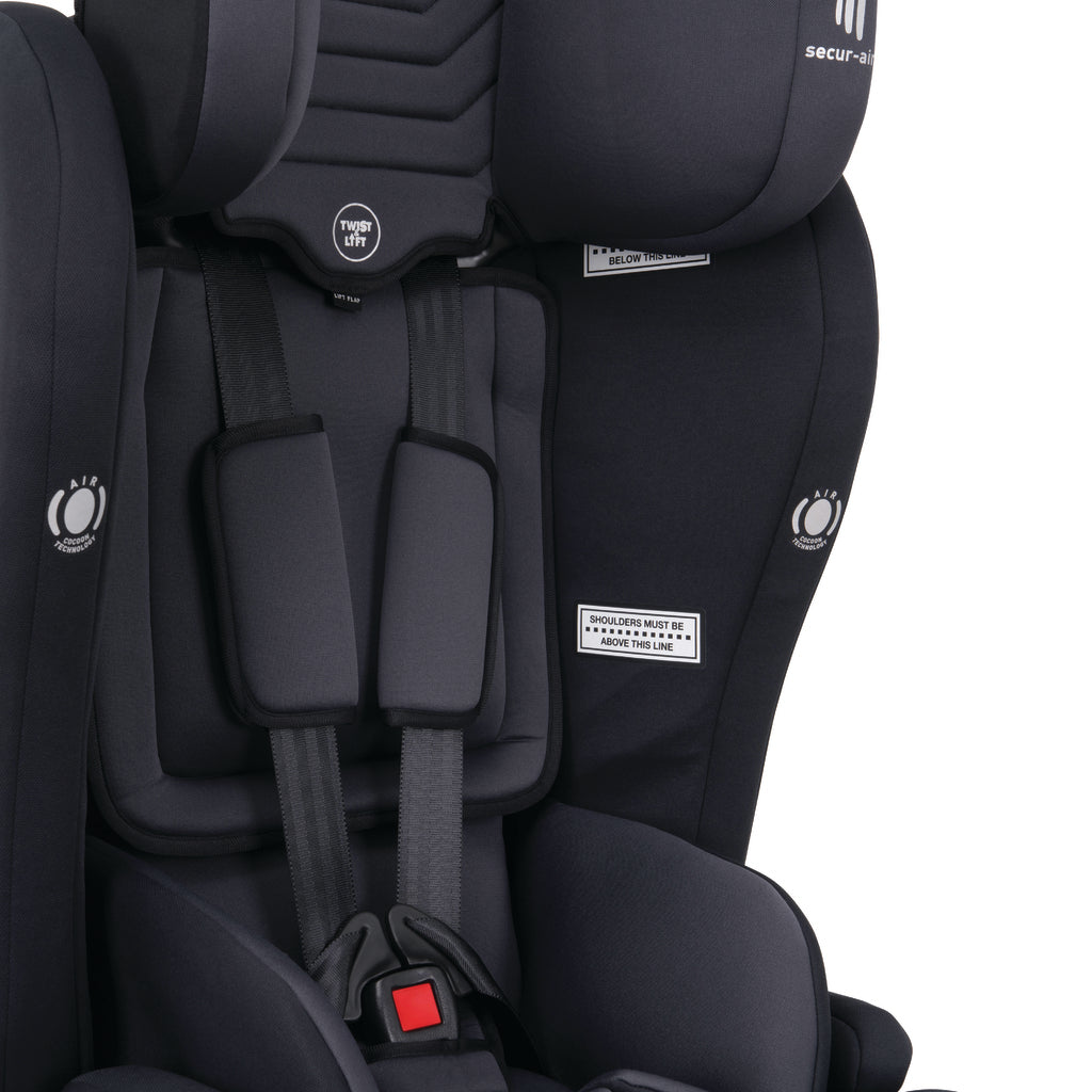 Secur-air™ works hand in hand with Air Cocoon Technology™ (A.C.T) to dramatically reduce crash energy to the child’s head. Horizon Pro comes with A.C.T as a standard feature, which alone reduces crash energy to the child more than five times lower than the level required by the 2013 Australian Standard. With the addition of Secur-air™, your restraint gains a third layer of protection for your child’s head, making it the safest restraint to date we have ever produced.