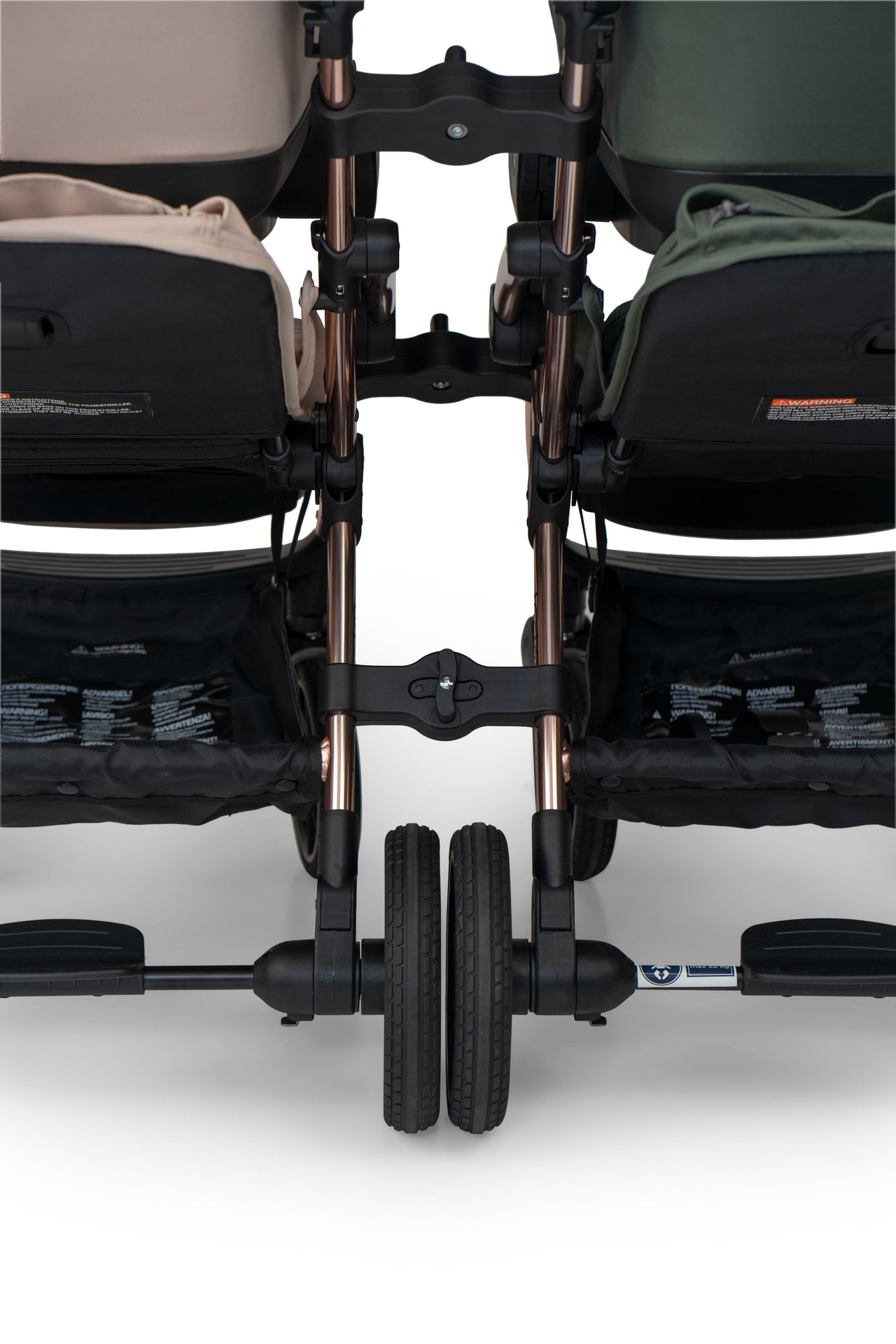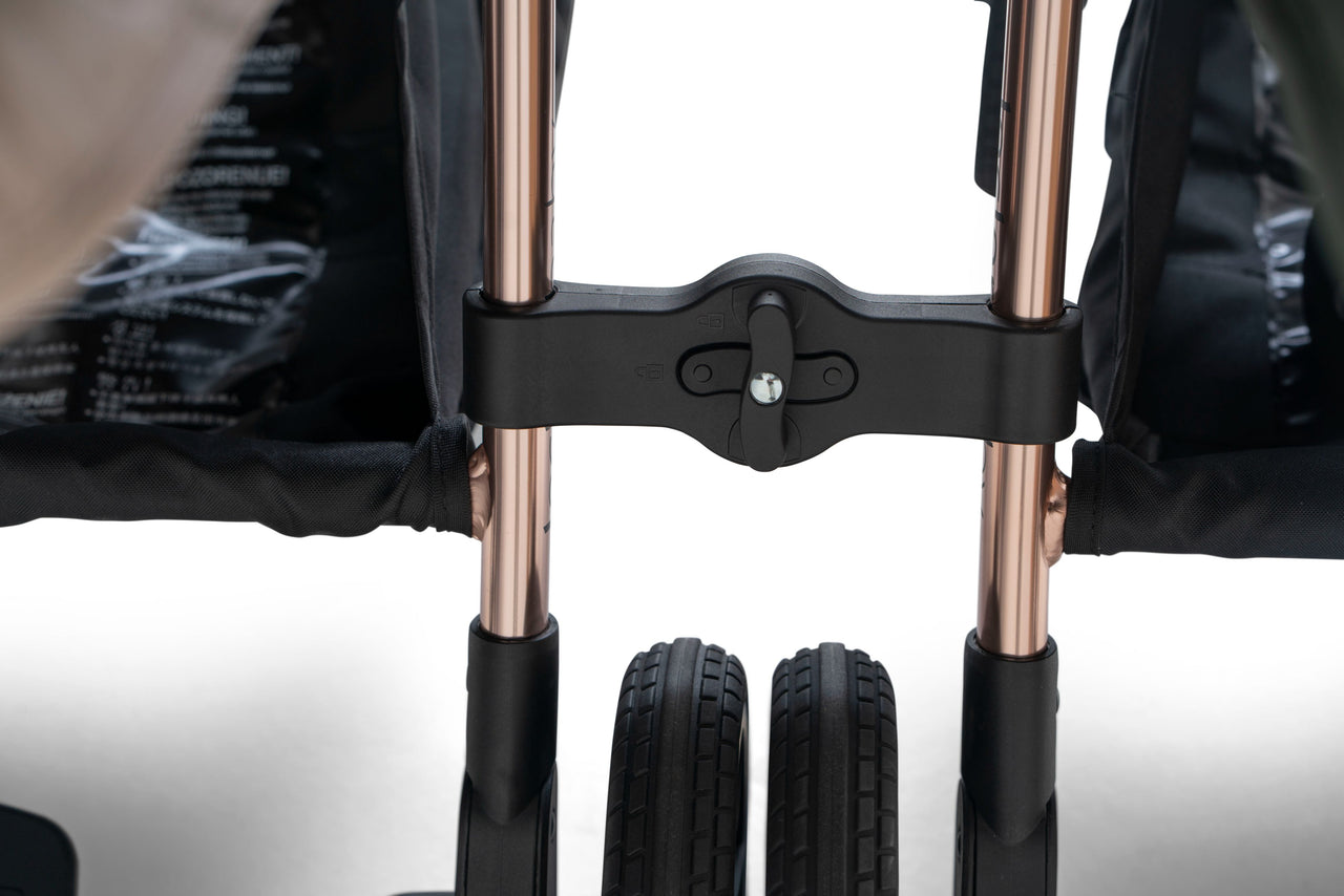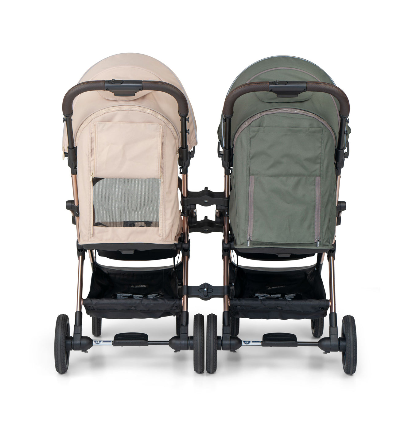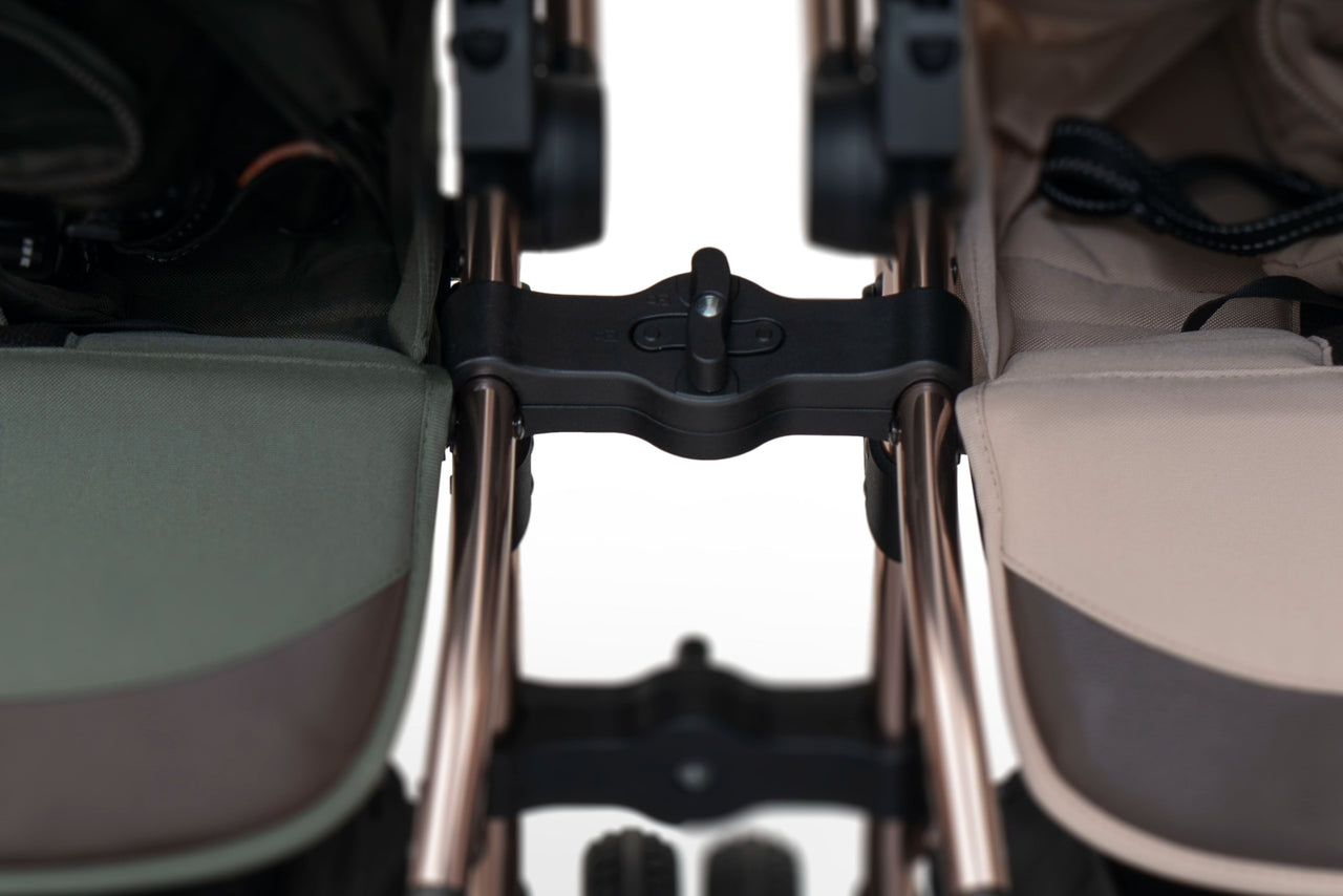 Do you still want to go on a separate trip? No need to take your twin pram with you. Simple disconnect the three connecting pieces and use the prams separately. One for mum, and one for dad!