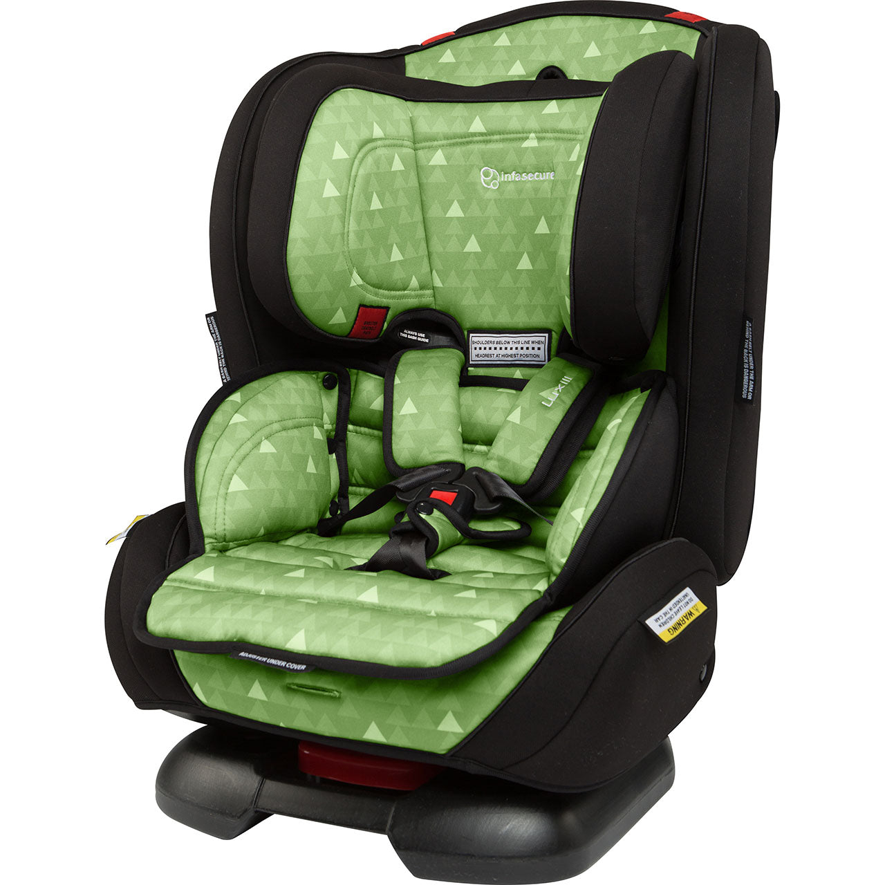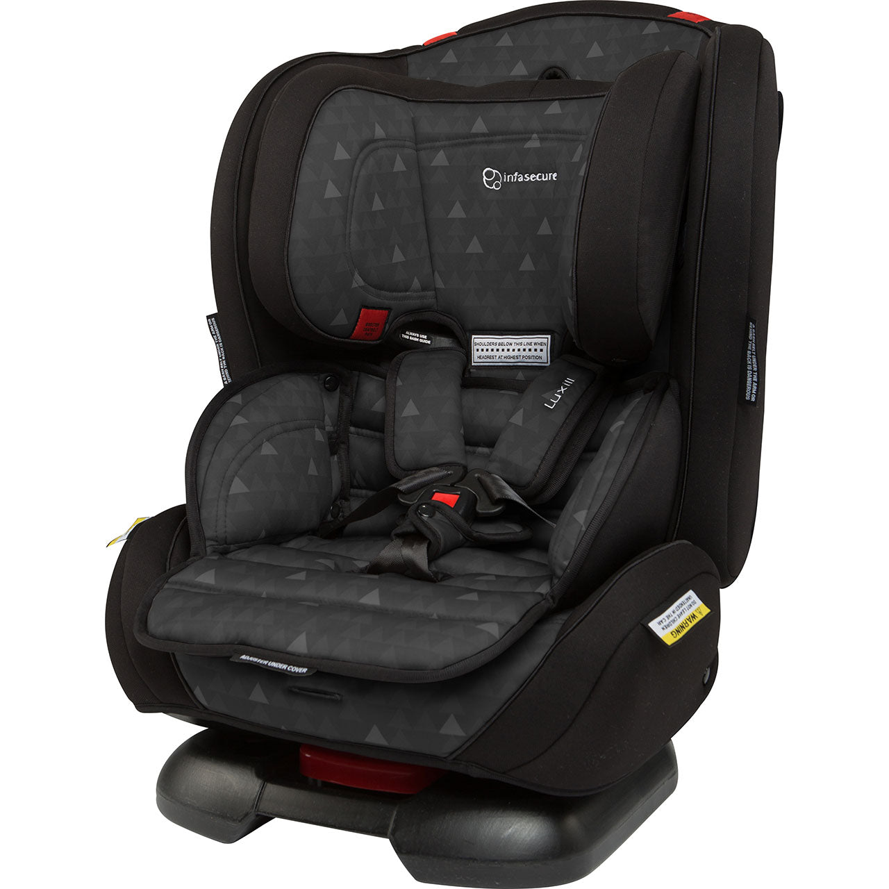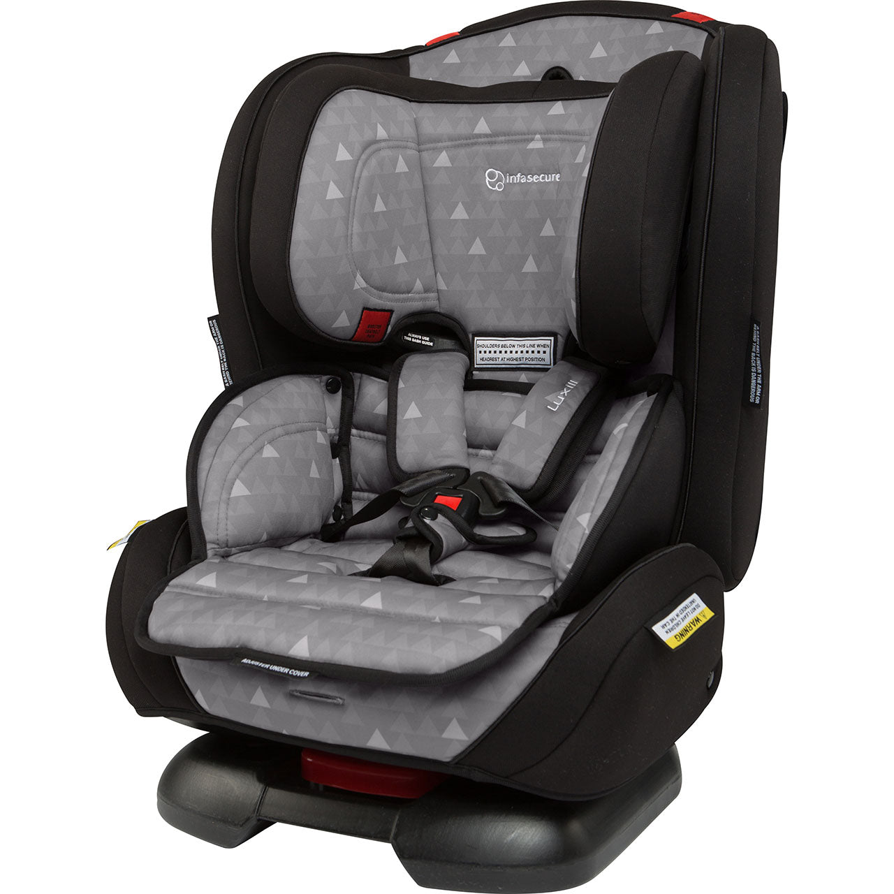 The Luxi II’s rearward facing mode now accommodates children up to a large 12-month-old. Then, it turns around for use as a Forward Facing child restraint with an internal harness seat for children up to a large 4-year-old. From there, it converts into a Booster Seat for use with the vehicle’s lap & sash seatbelt. The higher headrest and shoulder height marker now sits at approximately 51cm. This means it accommodates more children for longer!
