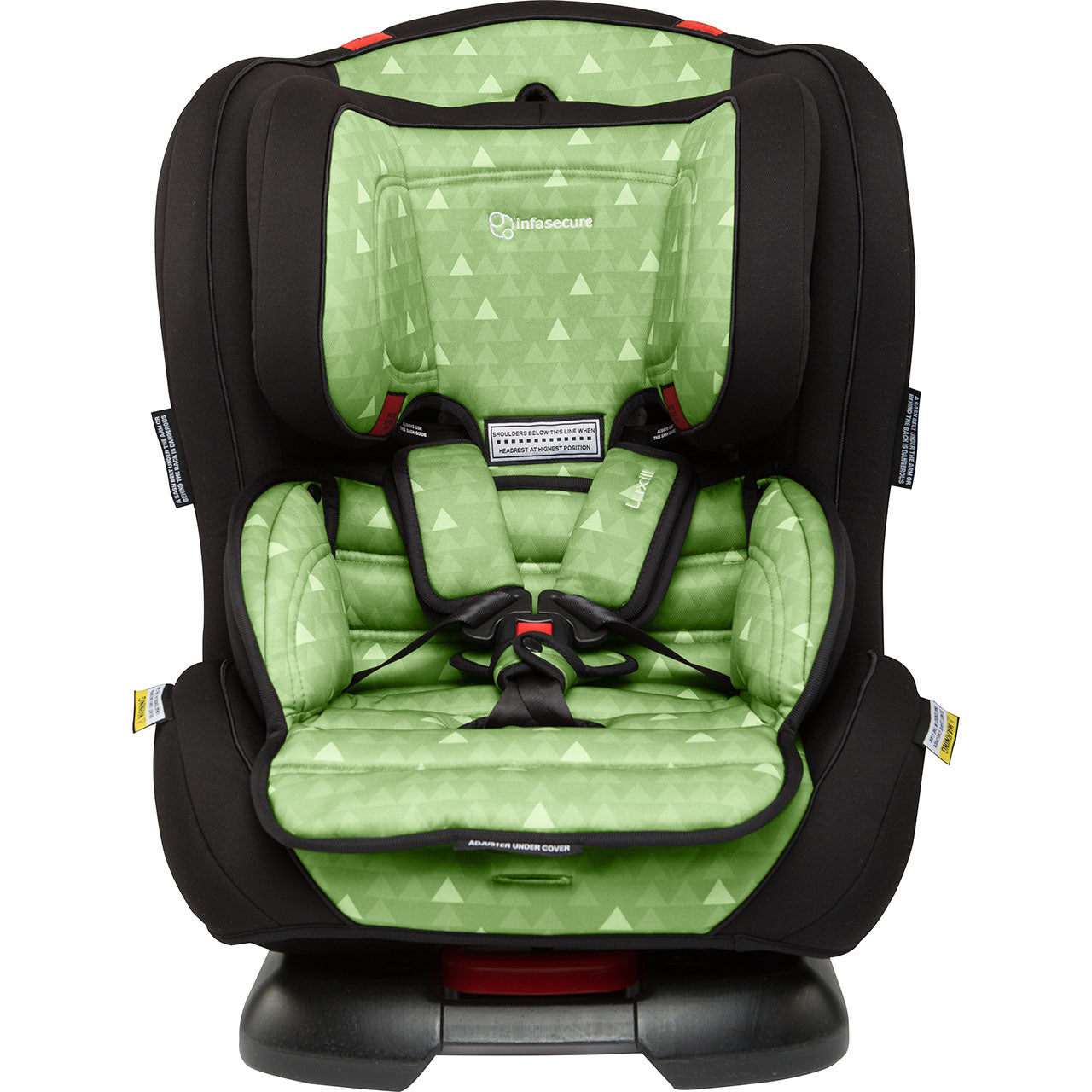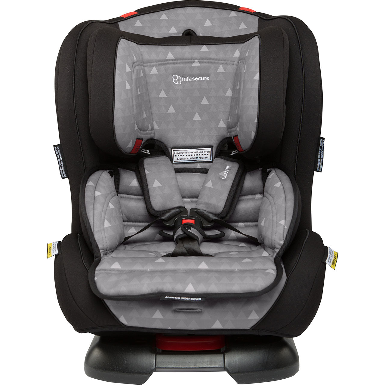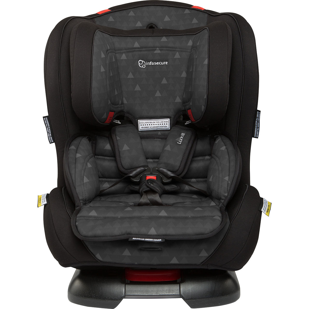 The Luxi II’s rearward facing mode now accommodates children up to a large 12-month-old. Then, it turns around for use as a Forward Facing child restraint with an internal harness seat for children up to a large 4-year-old. From there, it converts into a Booster Seat for use with the vehicle’s lap & sash seatbelt. The higher headrest and shoulder height marker now sits at approximately 51cm. This means it accommodates more children for longer!