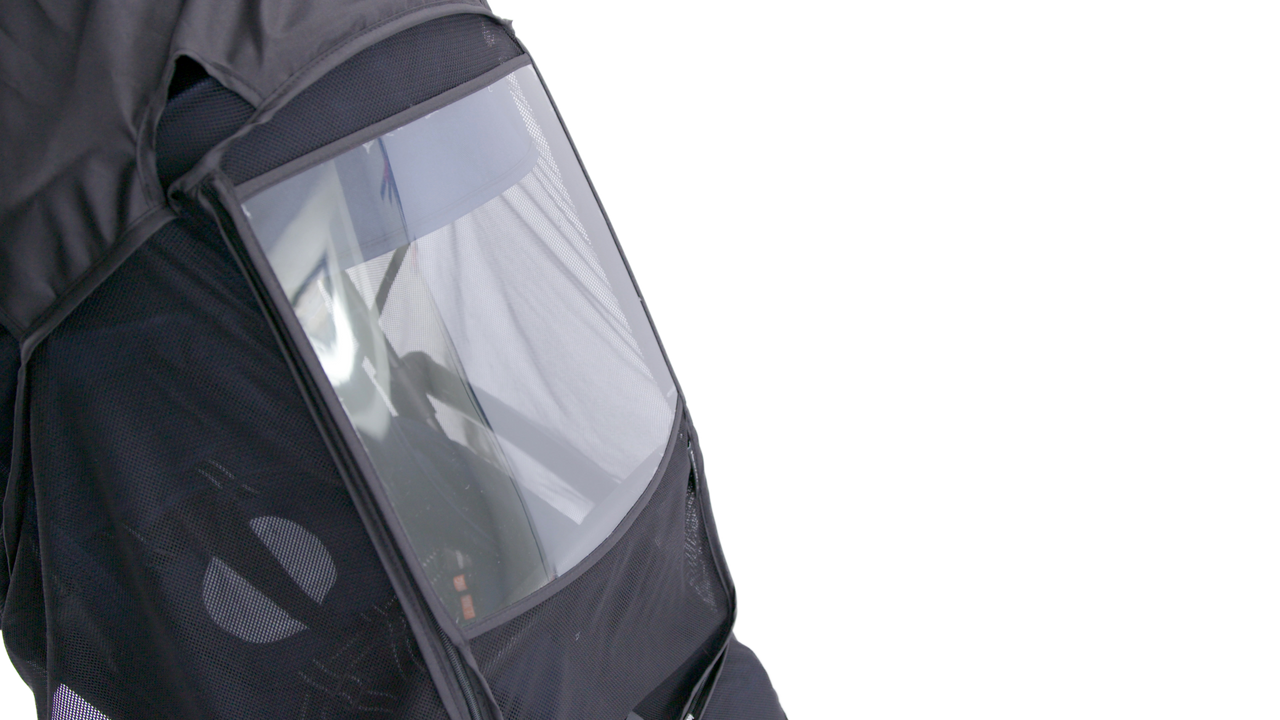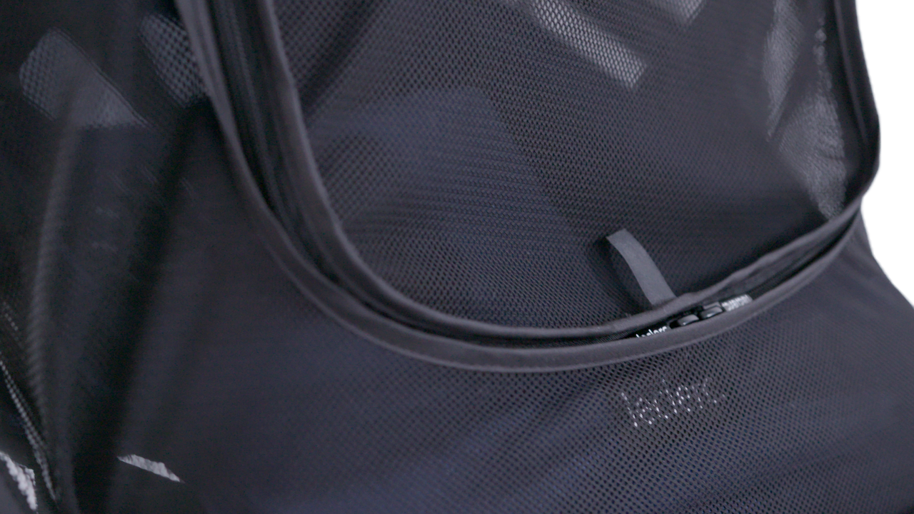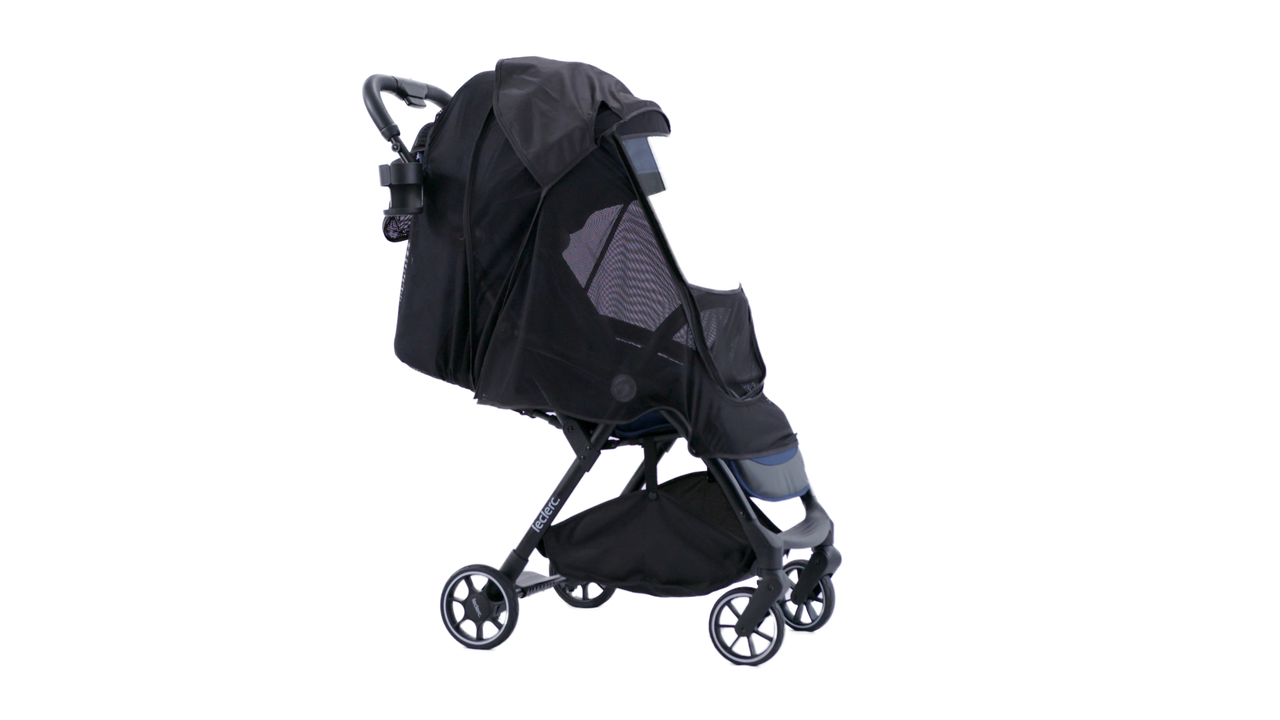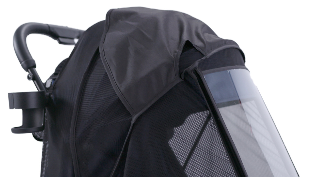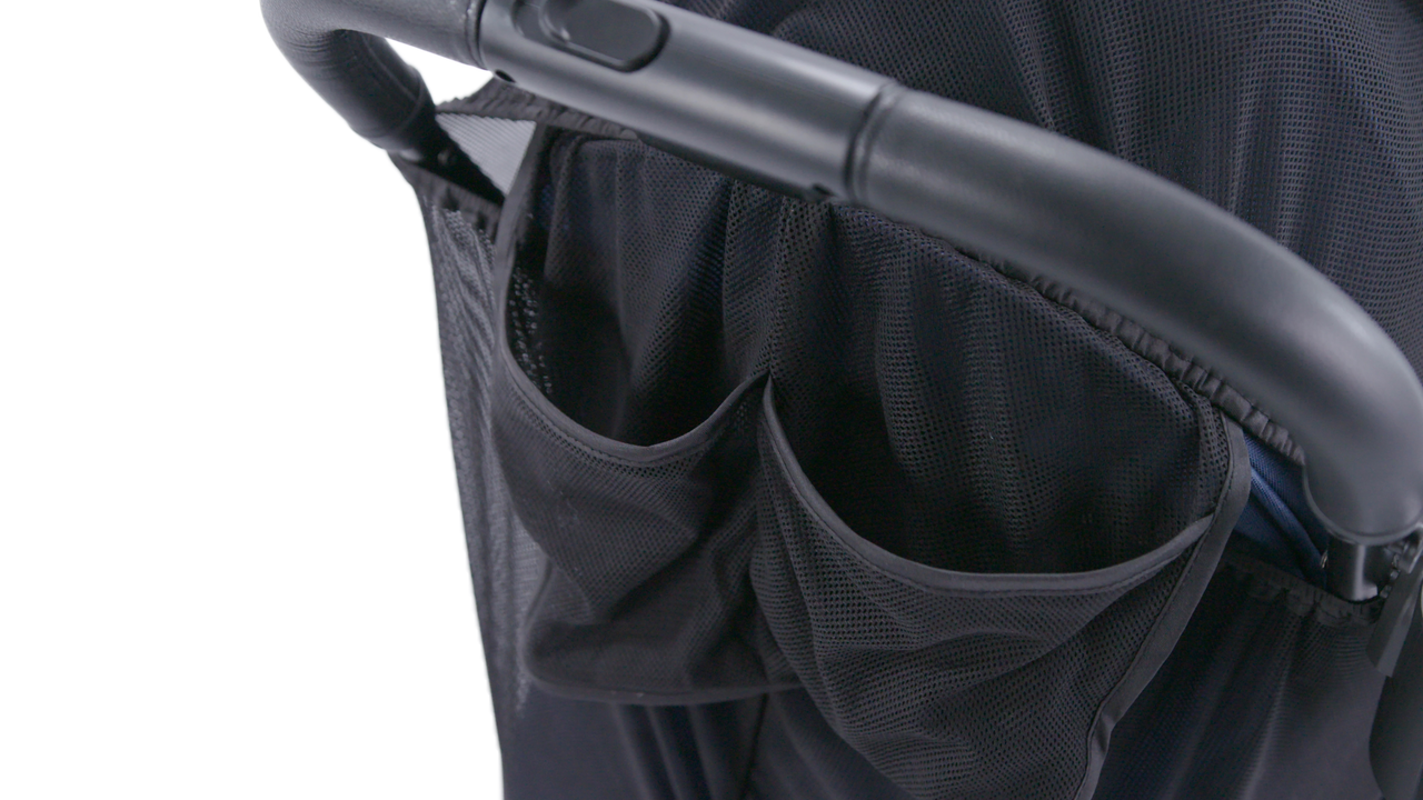 There are 2 handy pockets at the back and the screen at the front can be zipped open. The mosquito net comes in a handy zippered storage bag and can be stored in the luggage basket under the seat.