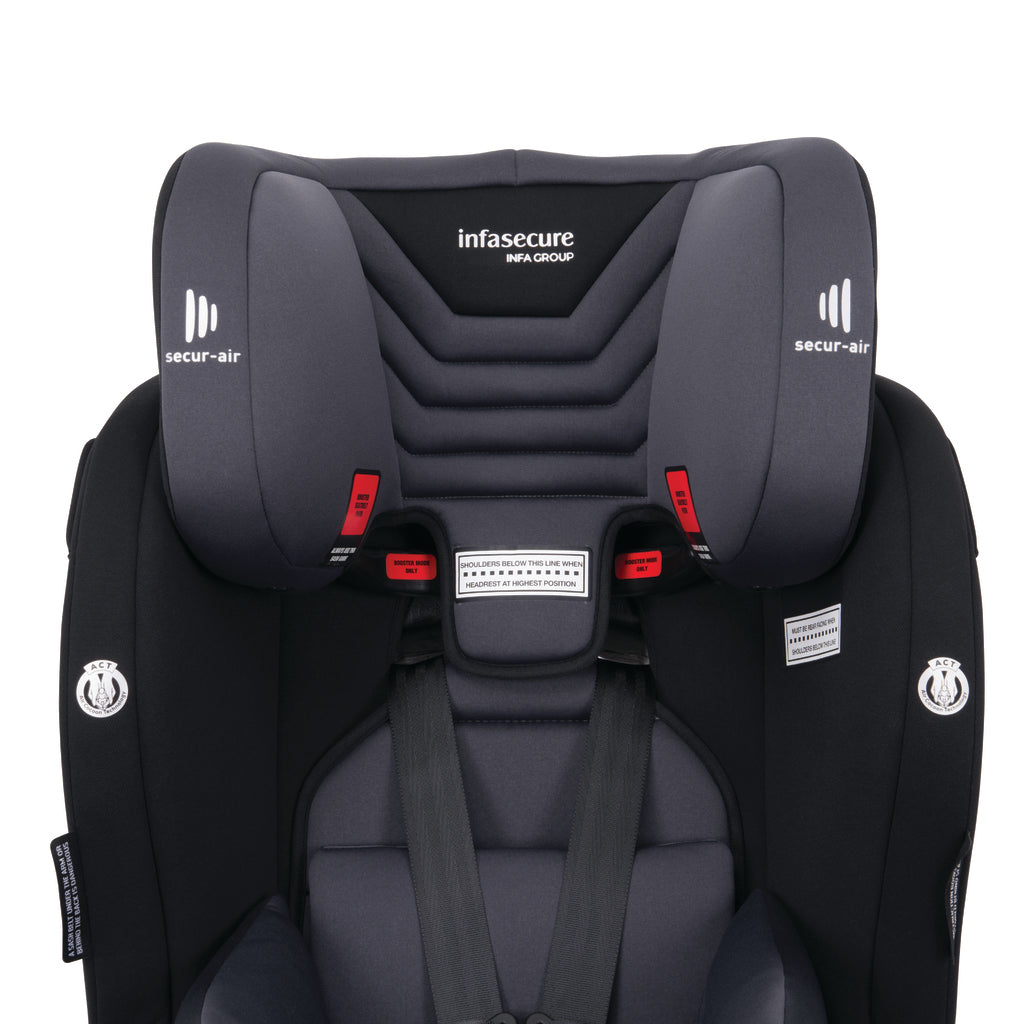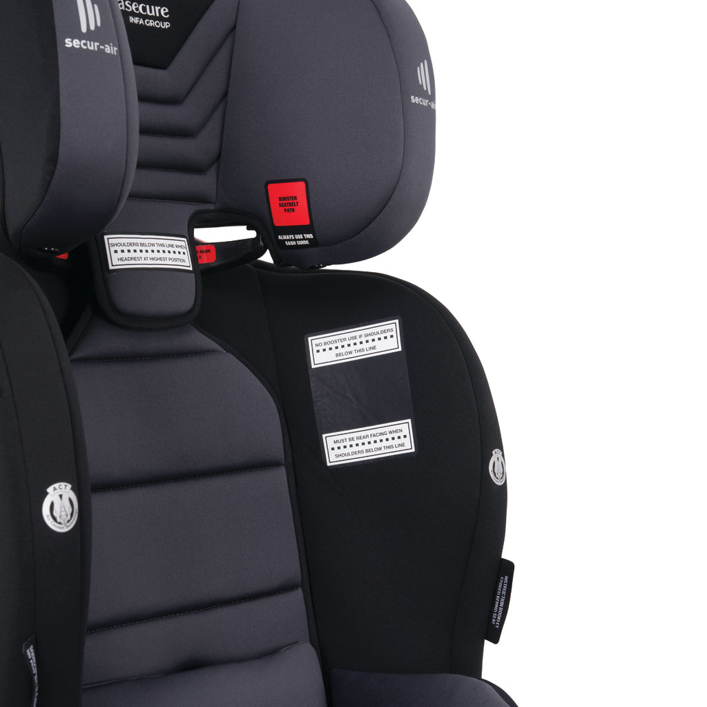 Secur-air™ works hand in hand with Air Cocoon Technology™ (A.C.T) to dramatically reduce crash energy to the child’s head. Stellar Pro comes with A.C.T as a standard feature, which alone reduces crash energy to the child more than five times lower than the level required by the 2013 Australian Standard. With the addition of Secur-air™, your restraint gains a third layer of protection for your child’s head, making it the safest restraint to date we have ever produced.