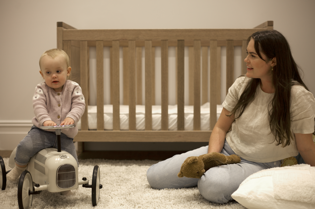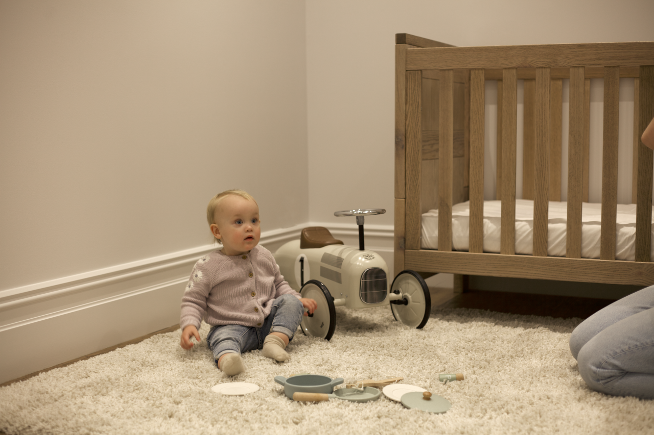 The adjustable base on the Asher Cot features a newborn & toddler setting, allowing you to raise or lower the height depending on your childs age and development. The Asher Cot can also be converted into a Toddler Bed with the Toddler Bed Conversion Kit, included with your purchase.