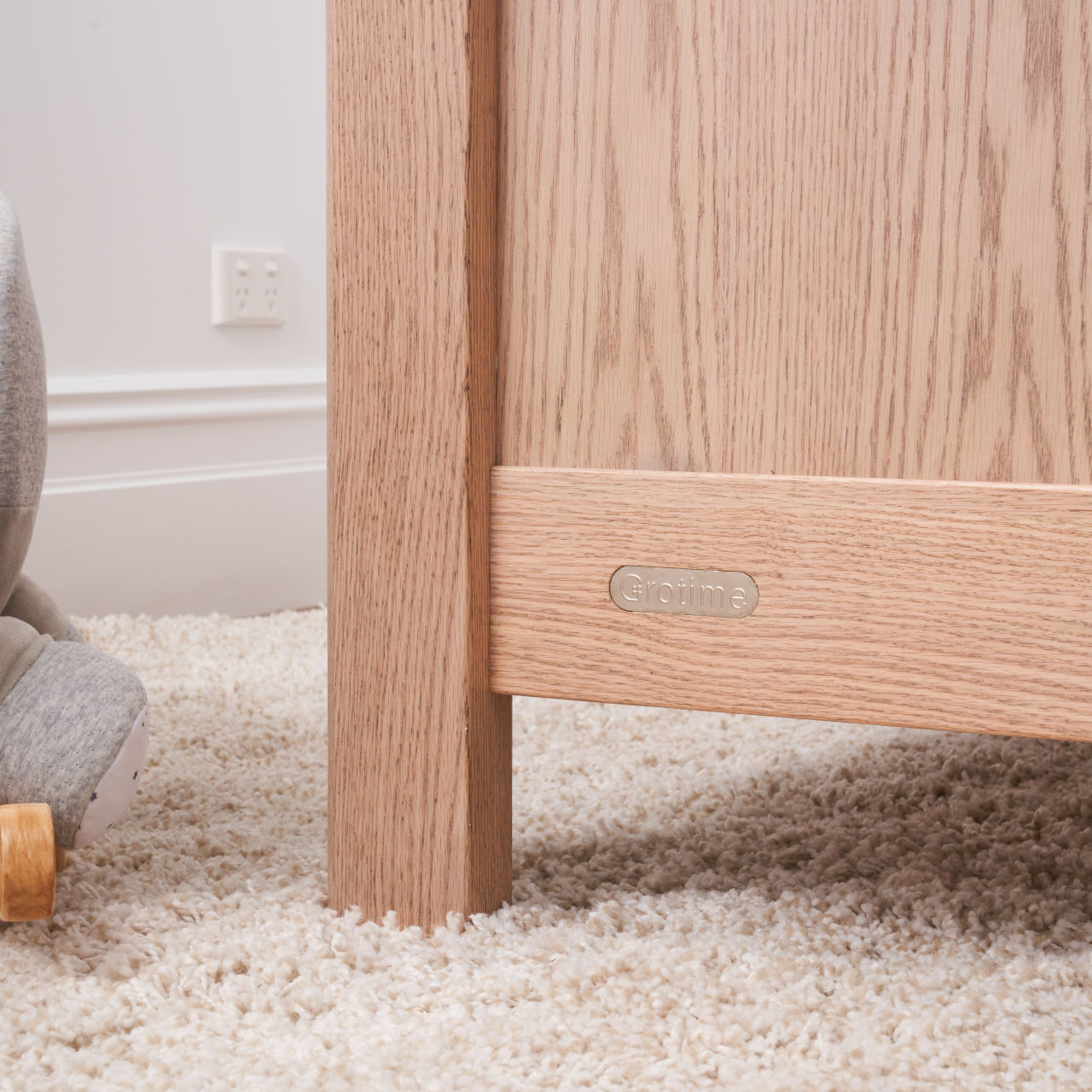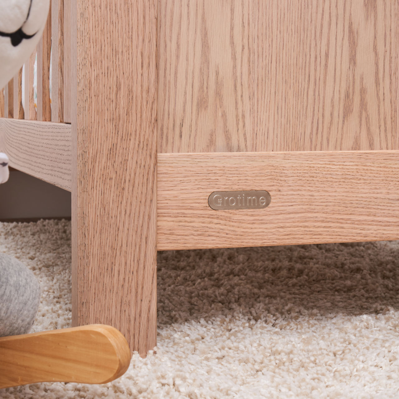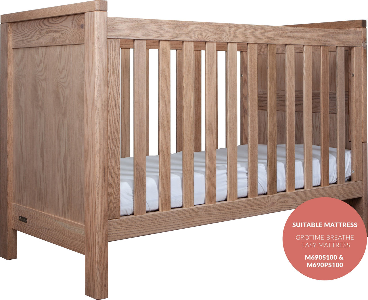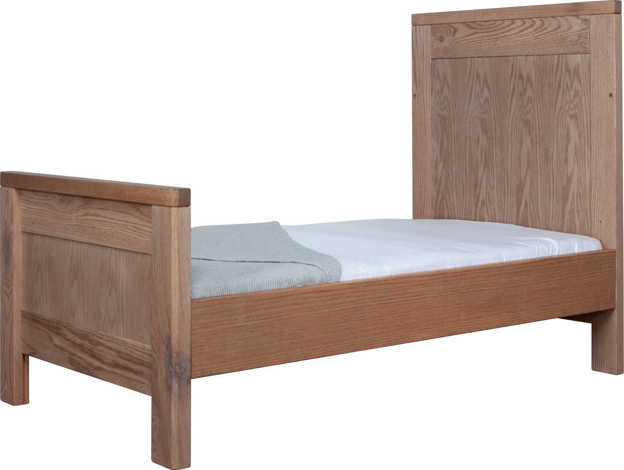 The Asher Cot is available in American Oak and brings nature into any nursery with the strong American Oak Timber panelling.
