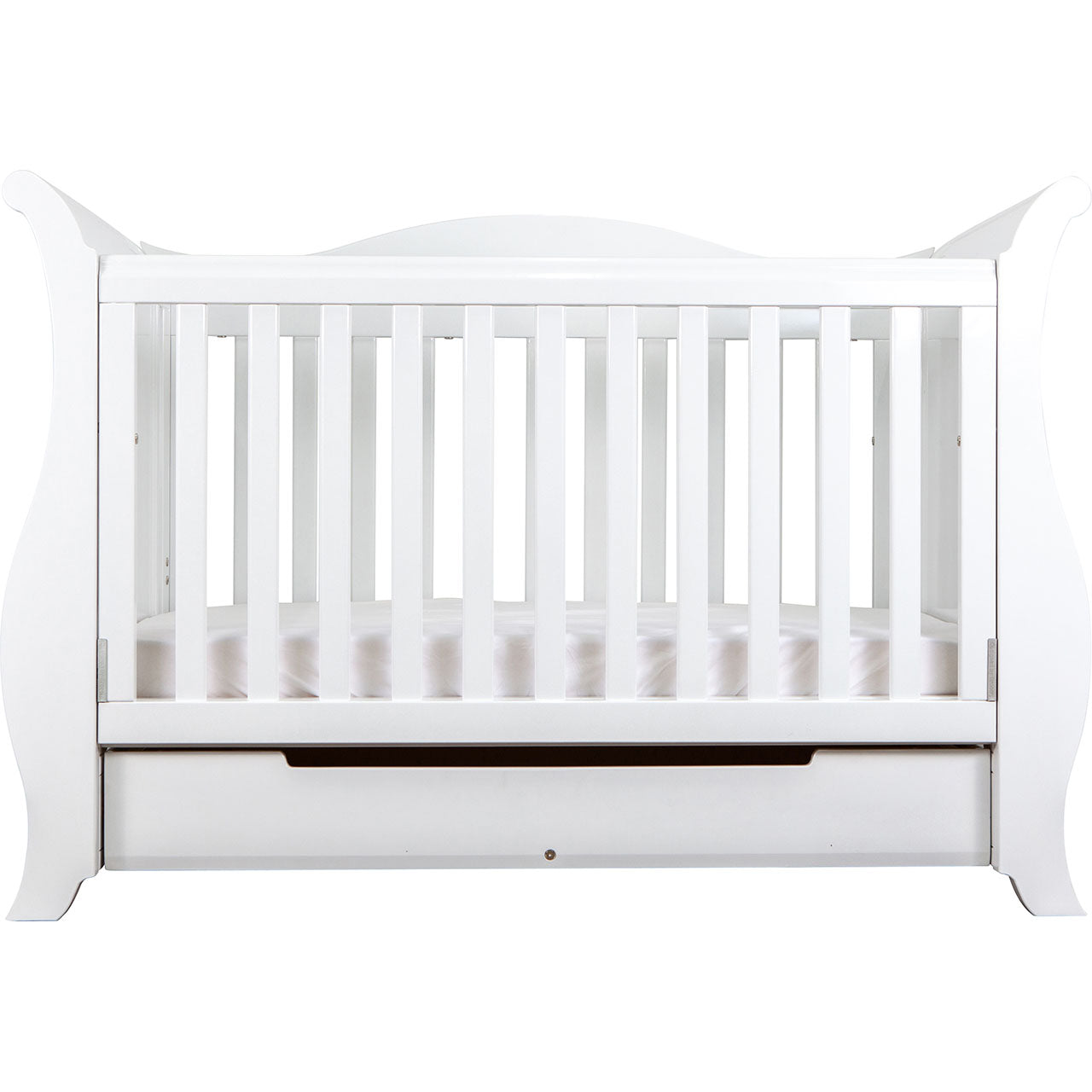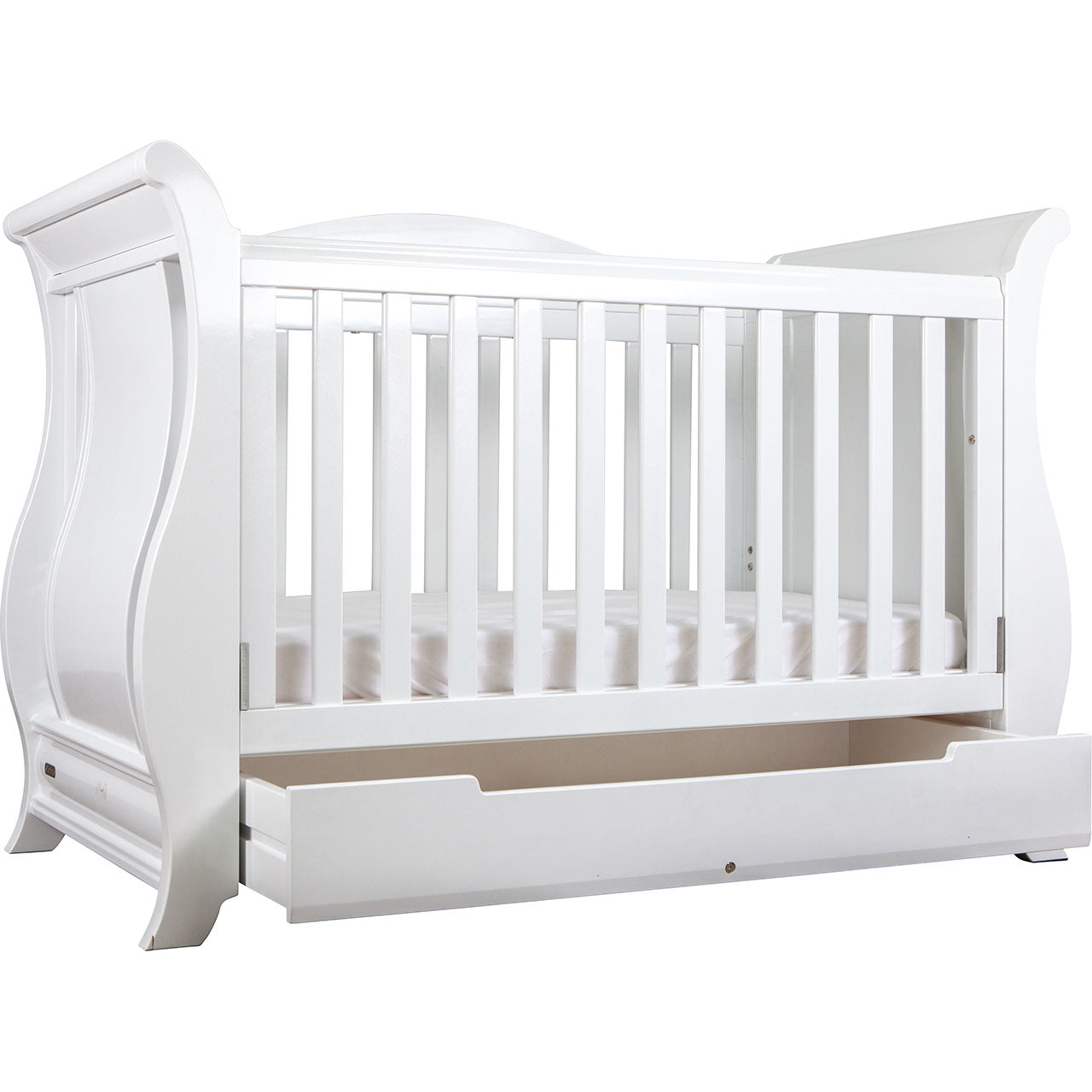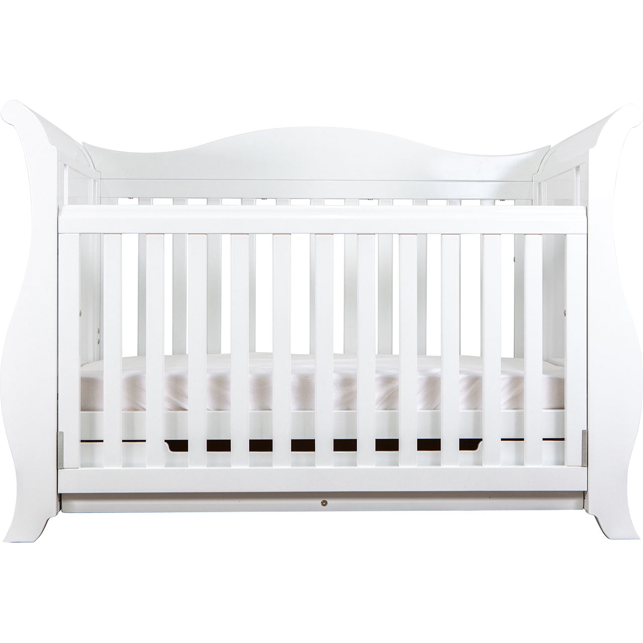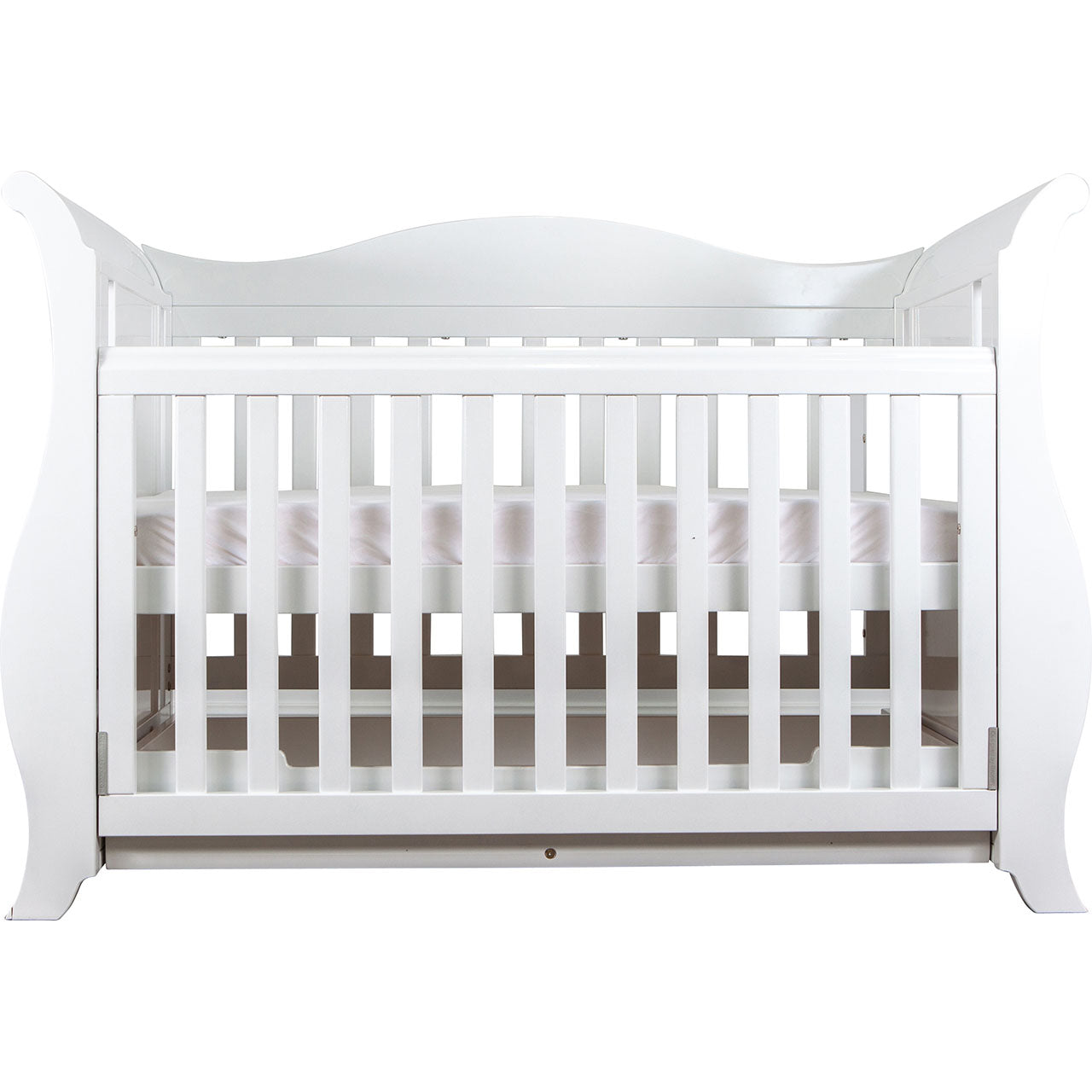 A design that makes a statement when you enter the room, the Imperial Cot is sure to stand out in any nursery setting. The Imperial is a luxurious centerpiece with its exaggerated rounded details and features. Built to last through all stages of childhood as it converts from an infant cot right through to a sofa bed.